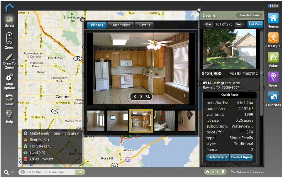 To see listings For Sale just click and the sub-menu item list will open. You’ll be able to select from various kinds of real estate (like residential, raw land, rental, etc.) and different types, like in residential: single family, townhouse, half-duplex, condominiums, and even farm & ranch.
