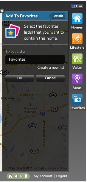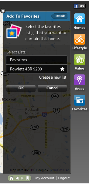 The Favorites menu allows you to save house listings into folders for your later reference.