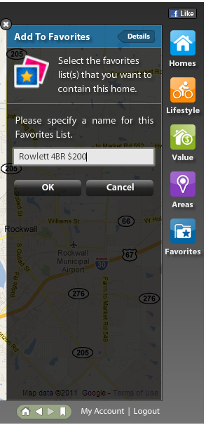 You might set up folders for homes in Rockwall, Heath, and so on, or folders for 3-bedrooms or 4-bedrooms, or folders to $250k or more, $150k and less or any other criteria to help you sort through them and make a decision. You might even have Lots, Rentals, and Houses. Your choice.